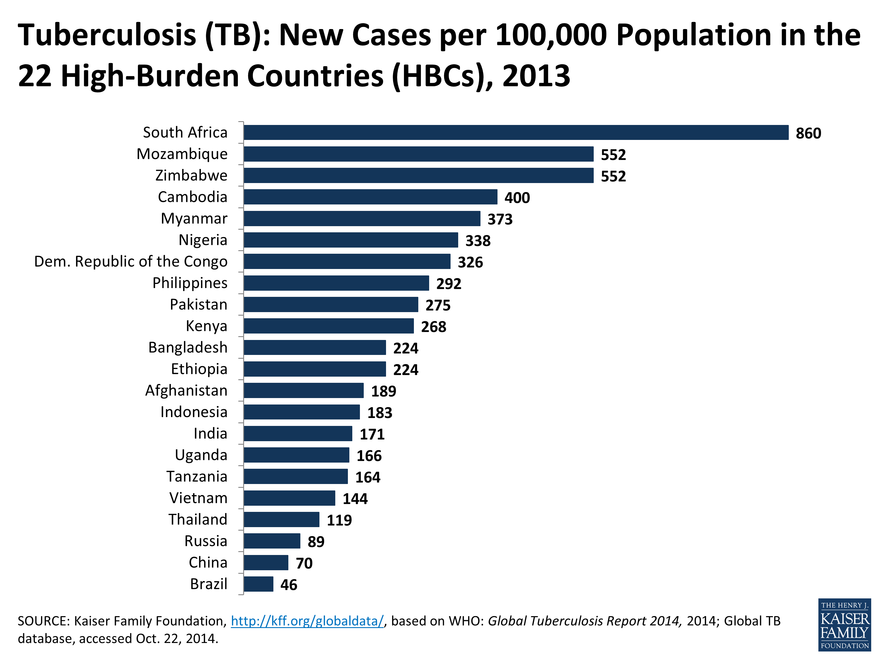 New Tuberculosis (TB) Cases per 100,000 Population, 22 High-Burd…